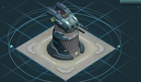 地上限定の砲台、対空能力はないので射撃タワーと並べて配置するといい。 低レベルだと他の防衛施設と耐久面にそこまで差がないが、徐々に硬さが目立ってくるようになる。 その硬さを活かしてタワーや砲台の前面に設置して攻撃と防御を同時にしつつ他の防衛施設と連携するのが基本運用。 発射間隔は0.8秒 7/7アップデートでLv11に到達すると対空仕様に換装可能となった。 攻撃対象が「対地」から「全方位」に変わるので、フライヤー相手に一方的に潰されることがなくなる。 一方、火力が減少するので囮に使われるガーディアンの即時排除には向かない。硬さや射程、発射間隔などは変化なし。 換装は随時可能なので他の防衛施設との兼ね合いで調整しよう。