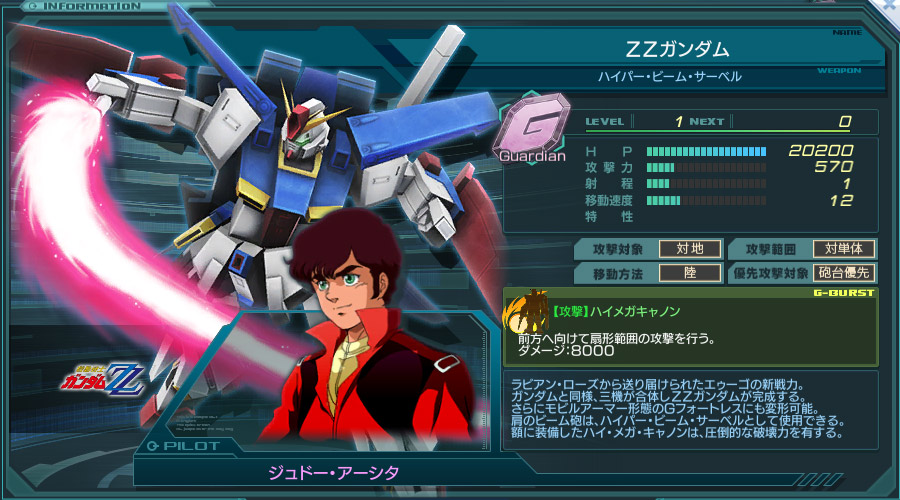 HP20000超えと、現状最高HPを持つG型エース ツリーを考慮するとレアチップが累計90枚必要。 最大の特徴はGバーストのハイメガキャノン。範囲攻撃8000ダメであり、防壁Lv7以下や防衛施設の大半(対空迎撃ミサイルはLv3以下)を一撃で破壊できる。 同時期開発可能なガンダムサンドロック改、ソードインパルスガンダムと比較すると移動速度、攻撃力が劣っている。(足回りが遅い設定はないのだが...) また、Gバーストによる個人・範囲強化は出来ないため、純粋な壁・囮としての運用が主になる。