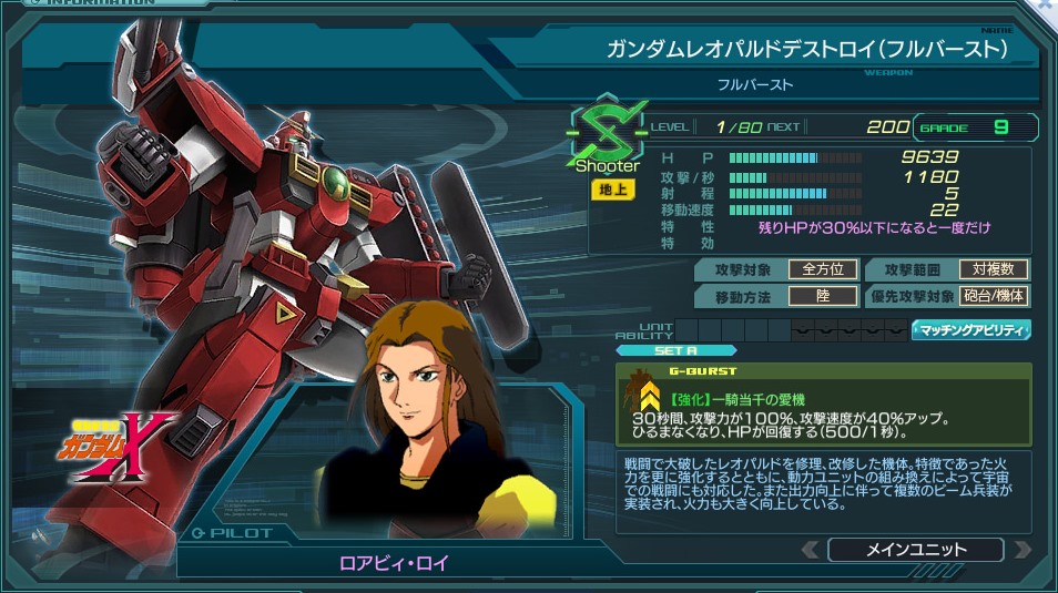 一覧 量産機 | エース | MA 最終ステータス 量産機 | エース | MA 比較データ エースGバースト | シリーズ別早見表 | 特性早見表| MS索引 赤字はレベルアップによるMAX値 基本ステータス