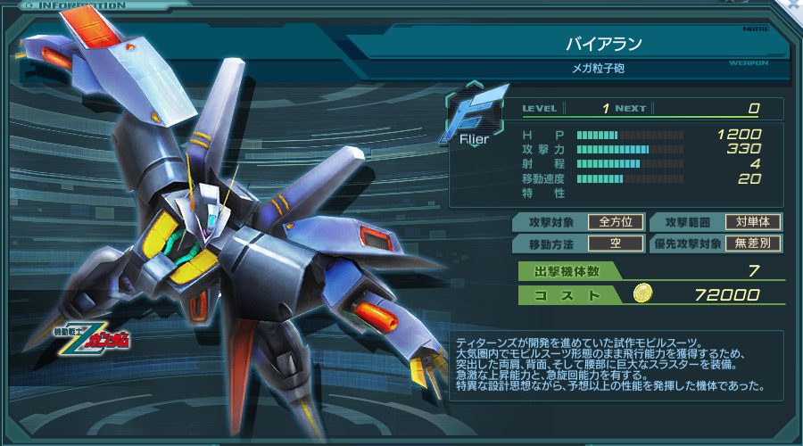 • それなりに数は製作されてたのかUC時代にはバイアラン・カスタムが最低2機作られてるね。でも作ってたキリマンジャロ基地が崩壊して大量生産には至ってないという設定のはず。 -- 2015-05-16 (土) 17:25:38