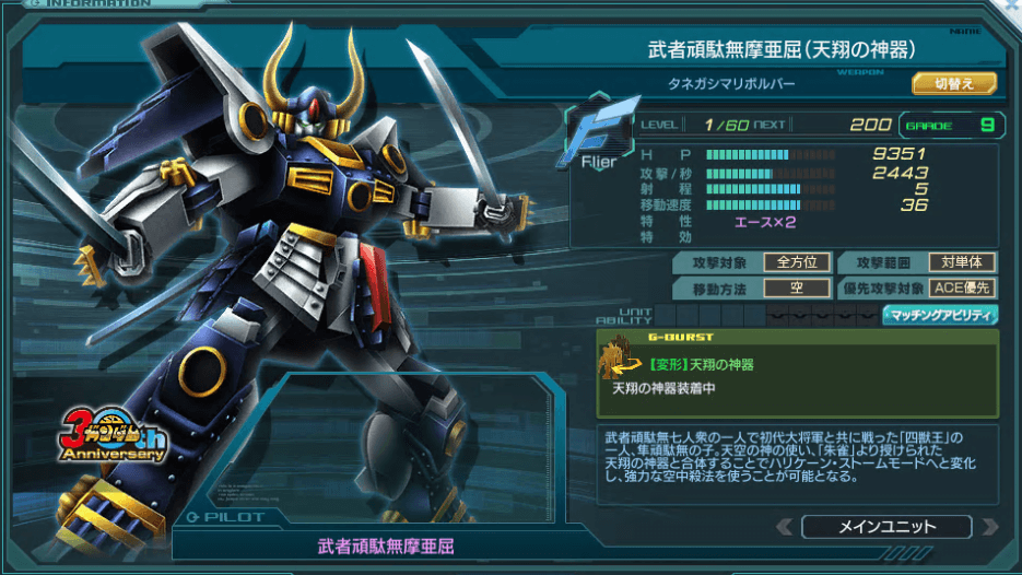 | エース機 | 登場作品 | SDガンダム 30th Anniversary | ||