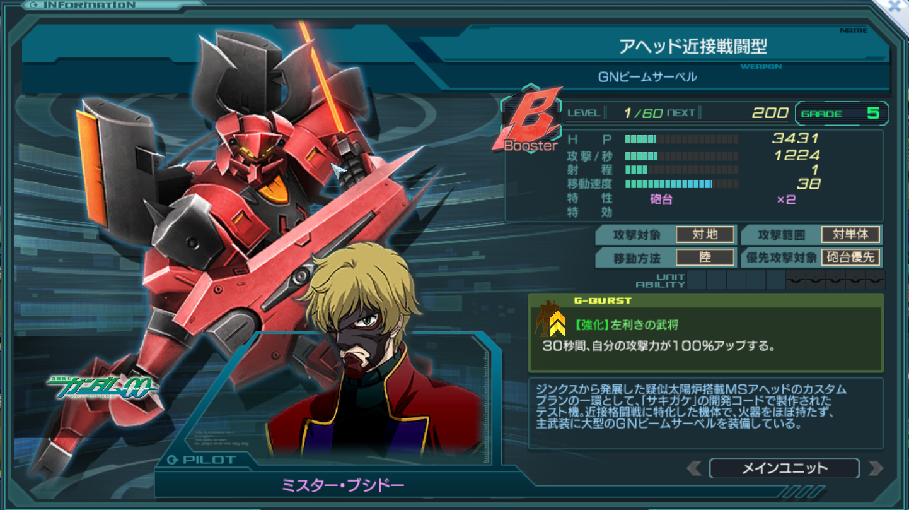 一覧 量産機 | エース | MA 最終ステータス 量産機 | エース | MA 比較データ エースGバースト | シリーズ別早見表 | 特性早見表| MS索引 赤字はレベルアップによるMAX値 基本ステータス