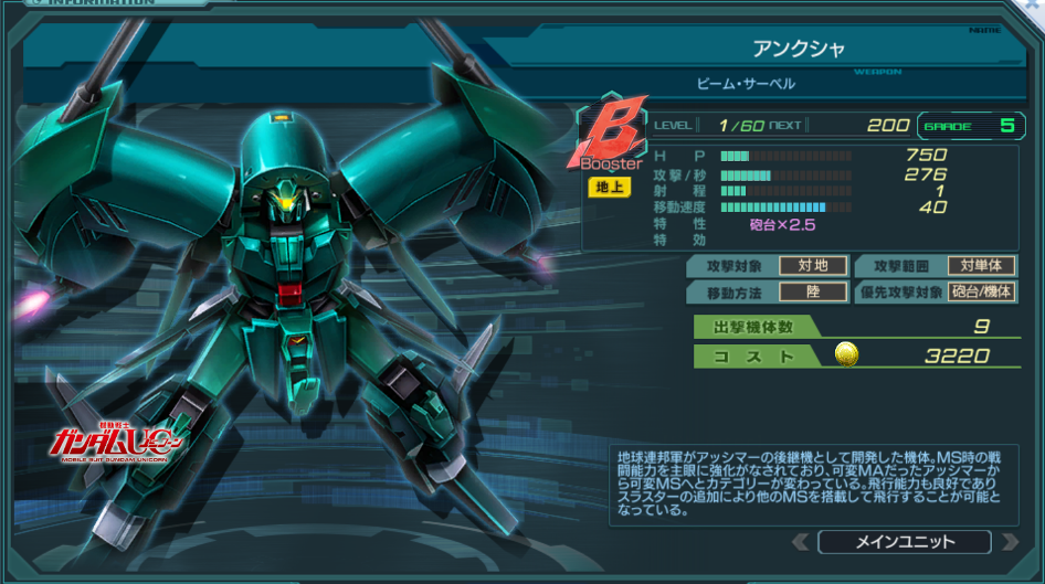一覧 量産機 | エース | MA 最終ステータス 量産機 | エース | MA 比較データ エースGバースト | シリーズ別早見表 | 特性早見表| MS索引 赤字はレベルアップによるMAX値 基本ステータス