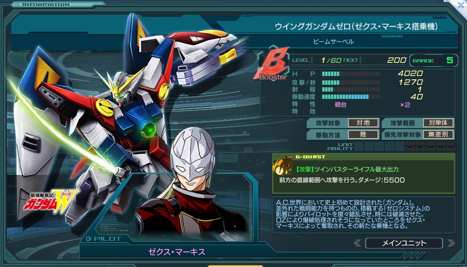 | ユニット専用アビリティ | ゼロと呼ばれたG | ||