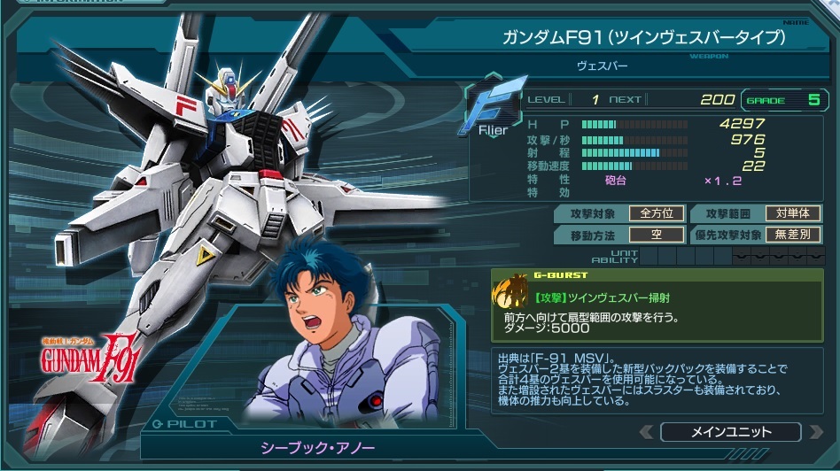 | エース機 | 登場作品 | 機動戦士ガンダムF91 | ||