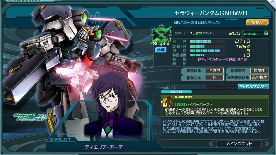 一覧 量産機 | エース | MA 最終ステータス 量産機 | エース | MA 比較データ エースGバースト | シリーズ別早見表 | 特性早見表| MS索引 赤字はレベルアップによるMAX値 基本ステータス