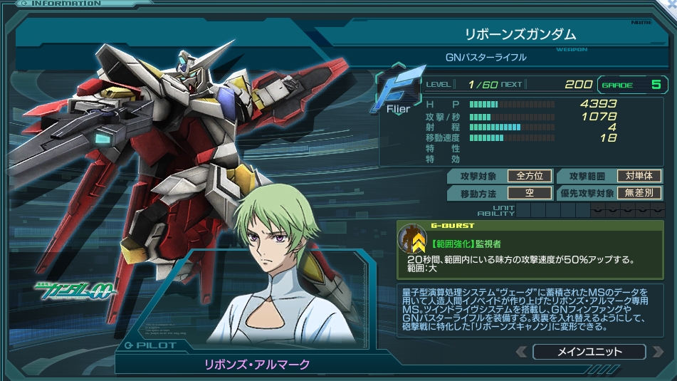 一覧 量産機 | エース | MA 最終ステータス 量産機 | エース | MA 比較データ エースGバースト | シリーズ別早見表 | 特性早見表| MS索引 赤字はレベルアップによるMAX値 基本ステータス