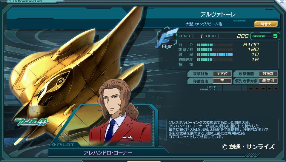 ※分離ユニットはトルーパーユニットとは違い、GRADEでステータスが変化する。 GRADE別 Lv60性能