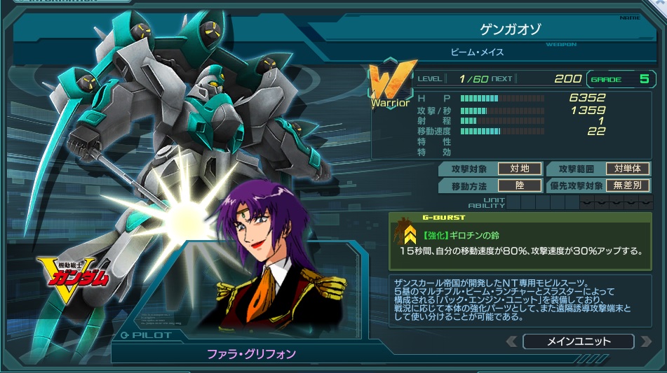 一覧 量産機 | エース | MA 最終ステータス 量産機 | エース | MA 比較データ エースGバースト | シリーズ別早見表 | 特性早見表| MS索引 赤字はレベルアップによるMAX値 基本ステータス