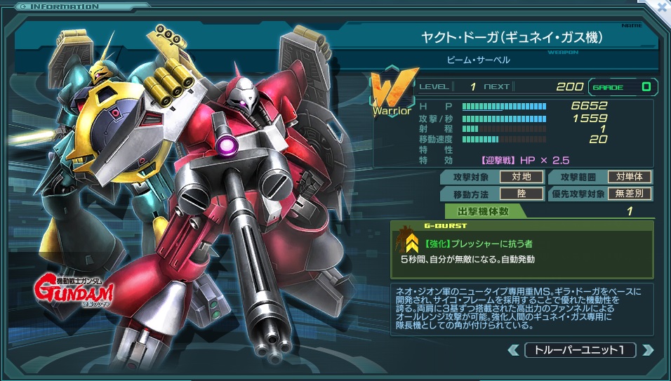 トルーパーのギュネイ機は性能がおおむねG5~6のWエース機並の性能である。