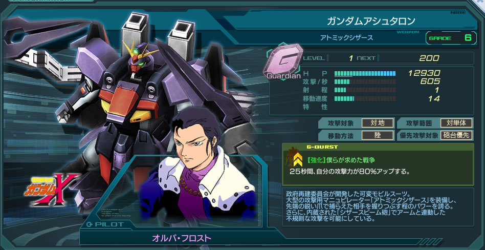 一覧 量産機 | エース | MA 最終ステータス 量産機 | エース | MA 比較データ エースGバースト | シリーズ別早見表 | 特性早見表| MS索引
