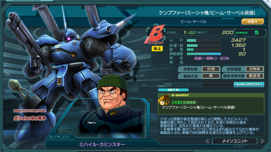 | [添付] | 名称 | ケンプファー(ミーシャ機/ビーム・サーベル装備) | ||