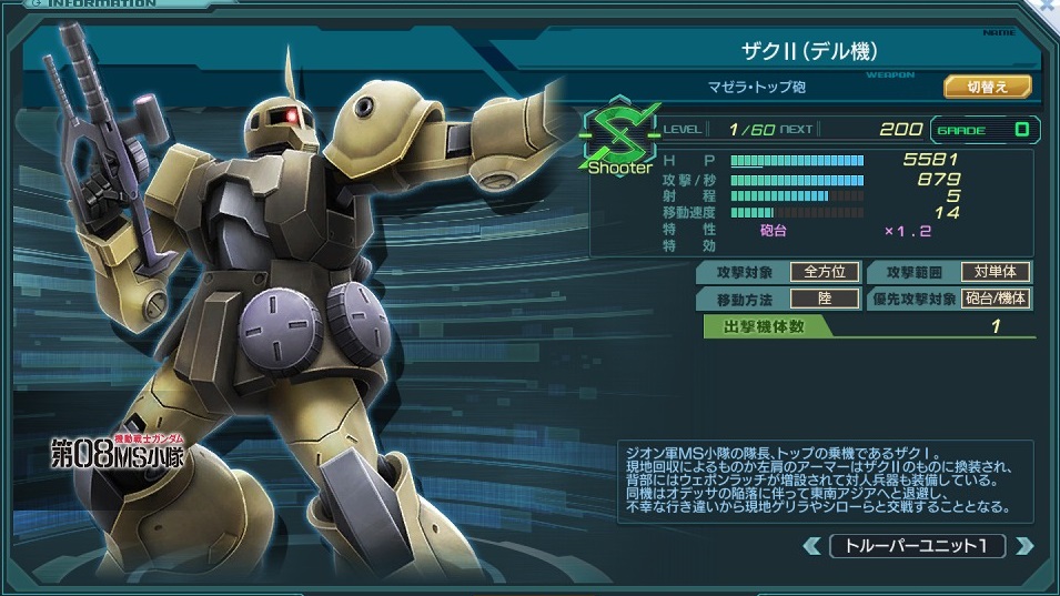 ![]() | 名称 | ザクI(トップ機/トップ小隊呼出) | ||