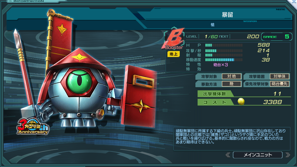 | 量産機 | 登場作品 | SDガンダム 30th Anniversary | ||
