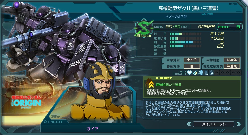 | 自分とトルーパーのGバースト効果時間、移動速度、 攻撃速度が50%アップする。※自身の破壊後も有効 | |||