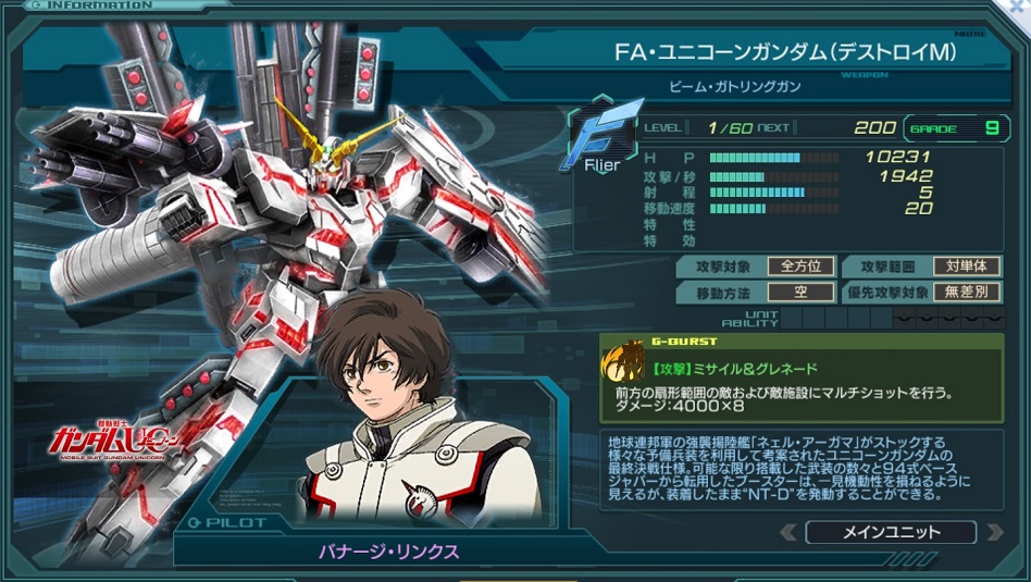 一覧 量産機 | エース | MA 最終ステータス 量産機 | エース | MA 比較データ エースGバースト | シリーズ別早見表 | 特性早見表| MS索引 赤字はレベルアップによるMAX値 基本ステータス