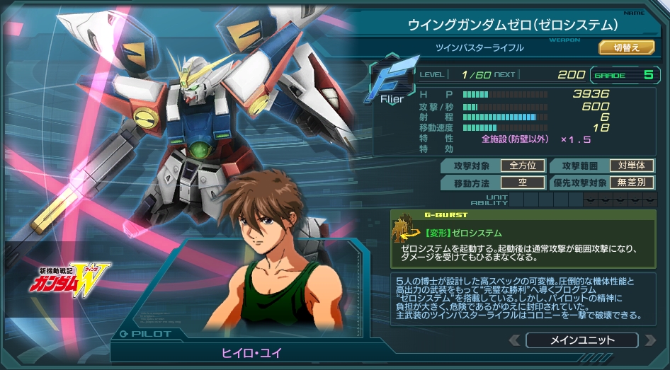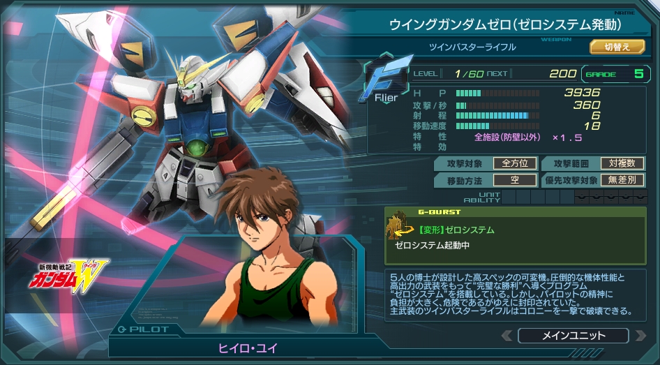 一覧 量産機 | エース | MA 最終ステータス 量産機 | エース | MA 比較データ エースGバースト | シリーズ別早見表 | 特性早見表| MS索引 赤字はレベルアップによるMAX値