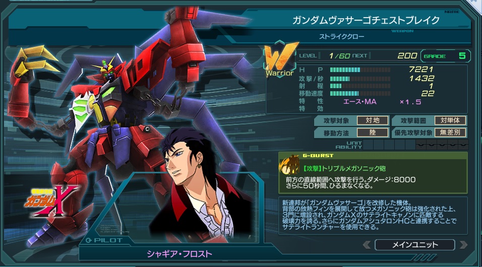 一覧 量産機 | エース | MA 最終ステータス 量産機 | エース | MA 比較データ エースGバースト | シリーズ別早見表 | 特性早見表| MS索引 赤字はレベルアップによるMAX値 基本ステータス