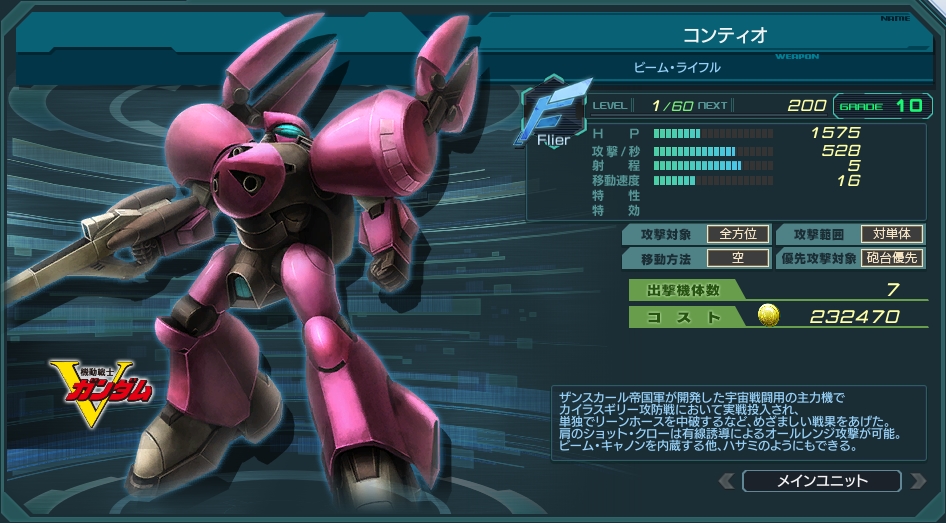 一覧 量産機 | エース | MA 最終ステータス 量産機 | エース | MA 比較データ エースGバースト | シリーズ別早見表 | 特性早見表| MS索引 赤字はレベルアップによるMAX値