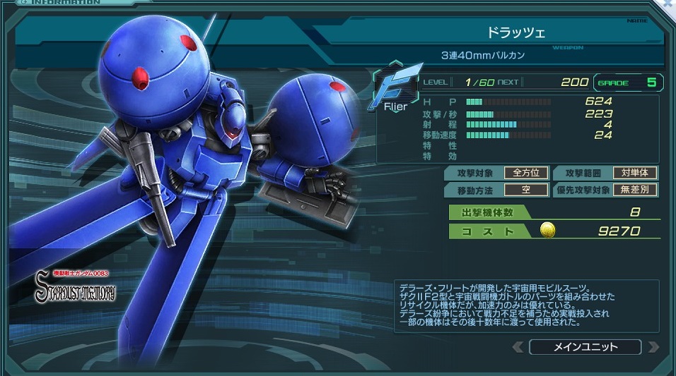 一覧 量産機 | エース | MA 最終ステータス 量産機 | エース | MA 比較データ エースGバースト | シリーズ別早見表 | 特性早見表| MS索引 赤字はレベルアップによるMAX値 基本ステータス