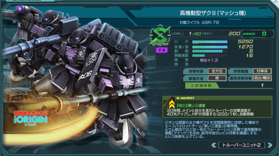 | 自分とトルーパーのGバースト効果時間、移動速度、 攻撃速度が50%アップする。※自身の破壊後も有効 | |||