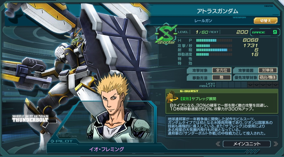 ![]() | 名称 | アトラスガンダム(サブレッグ展開中) | ||