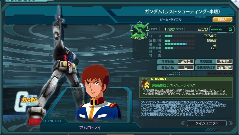 ![]() | 名称 | ガンダム(ラストシューティング) | ||