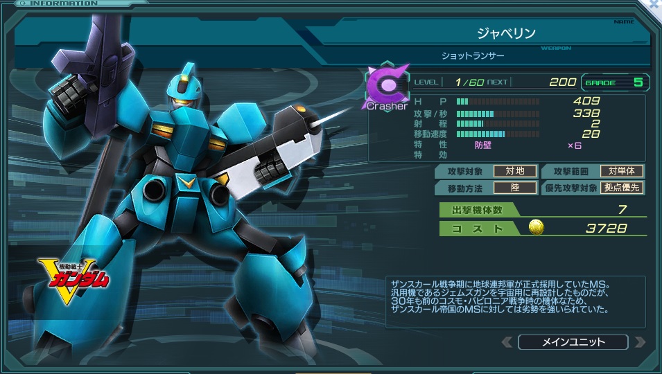 一覧 量産機 | エース | MA 最終ステータス 量産機 | エース | MA 比較データ エースGバースト | シリーズ別早見表 | 特性早見表| MS索引 赤字はレベルアップによるMAX値 基本ステータス