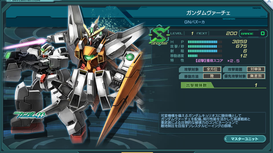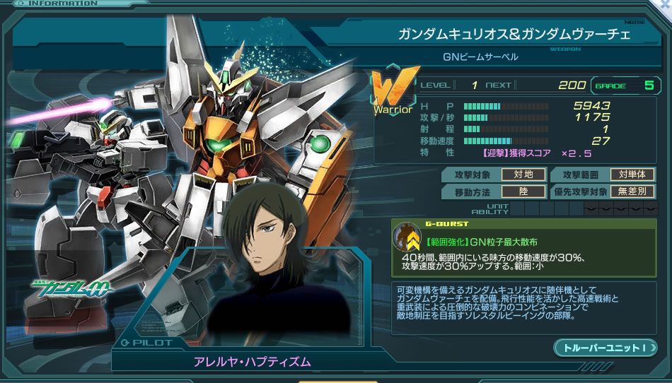 一覧 量産機 | エース | MA 最終ステータス 量産機 | エース | MA 比較データ エースGバースト | シリーズ別早見表 | 特性早見表| MS索引 赤字はレベルアップによるMAX値