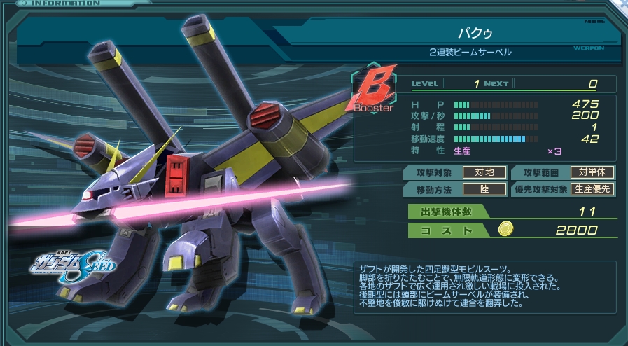 一覧 量産機 | エース | MA 最終ステータス 量産機 | エース | MA 比較データ エースGバースト | シリーズ別早見表 | 特性早見表| MS索引