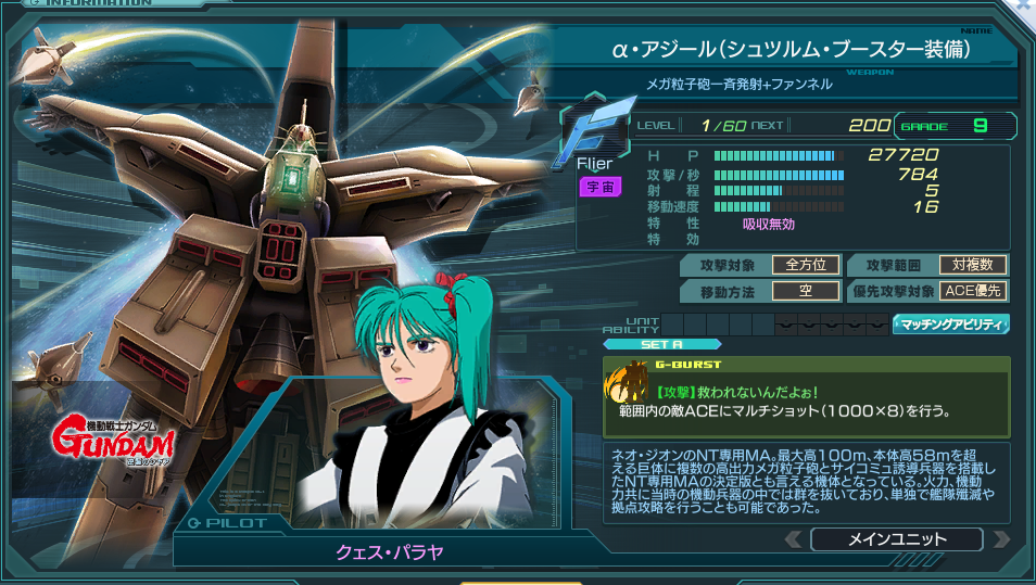 ![]() | 名称 | α・アジール(シュツルム・ブースター装備) | ||