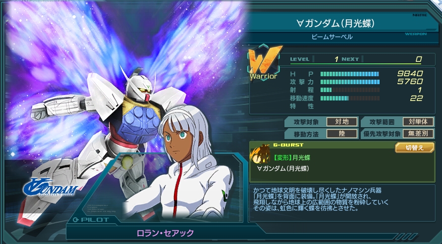 一覧 量産機 | エース | MA 最終ステータス 量産機 | エース | MA 比較データ エースGバースト | シリーズ別早見表 | 特性早見表| MS索引
