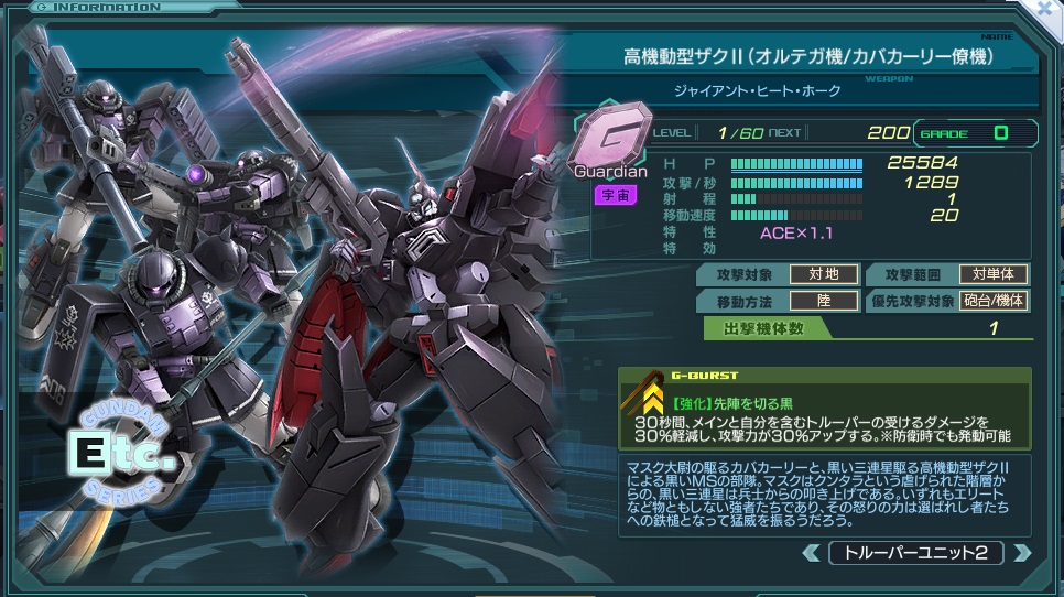 | Guardian×1 | 特性 | 命中30% ダメージ軽減30% 防壁×1.3 ACE×1.1 | ||