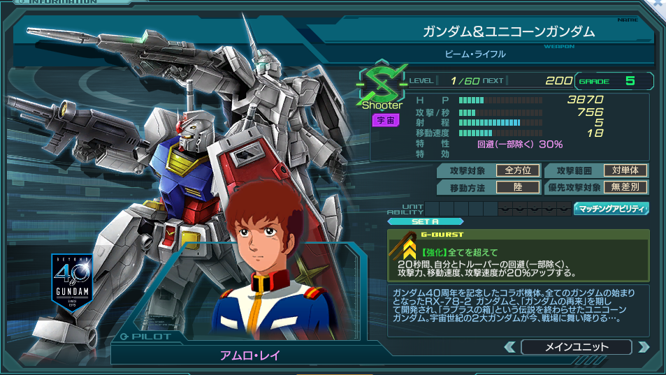 一覧 量産機 | エース | MA 最終ステータス 量産機 | エース | MA 比較データ エースGバースト | シリーズ別早見表 | 特性早見表| MS索引 赤字はレベルアップによるMAX値 基本ステータス