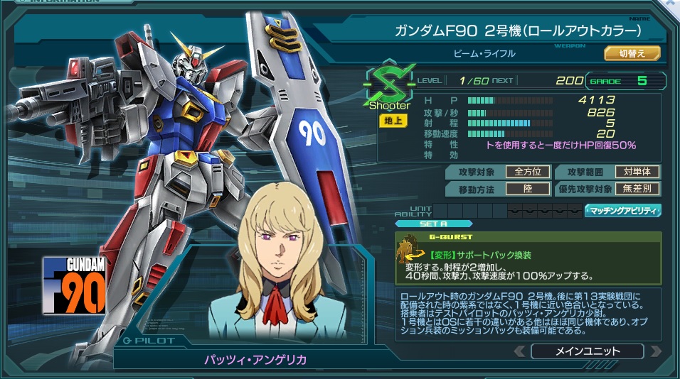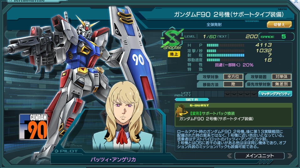 ![]() | 名称 | ガンダムF90 2号機(サポートタイプ装備) | ||