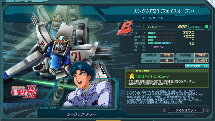 一覧 量産機 | エース | MA 最終ステータス 量産機 | エース | MA 比較データ エースGバースト | シリーズ別早見表 | 特性早見表| MS索引