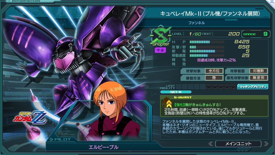 ![]() | 名称 | キュベレイMk-Ⅱ(プル機/ファンネル展開) | ||