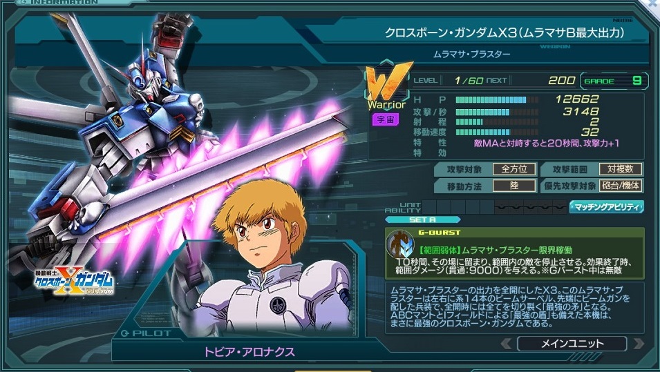 一覧 量産機 | エース | MA 最終ステータス 量産機 | エース | MA 比較データ エースGバースト | シリーズ別早見表 | 特性早見表| MS索引 赤字はレベルアップによるMAX値 基本ステータス