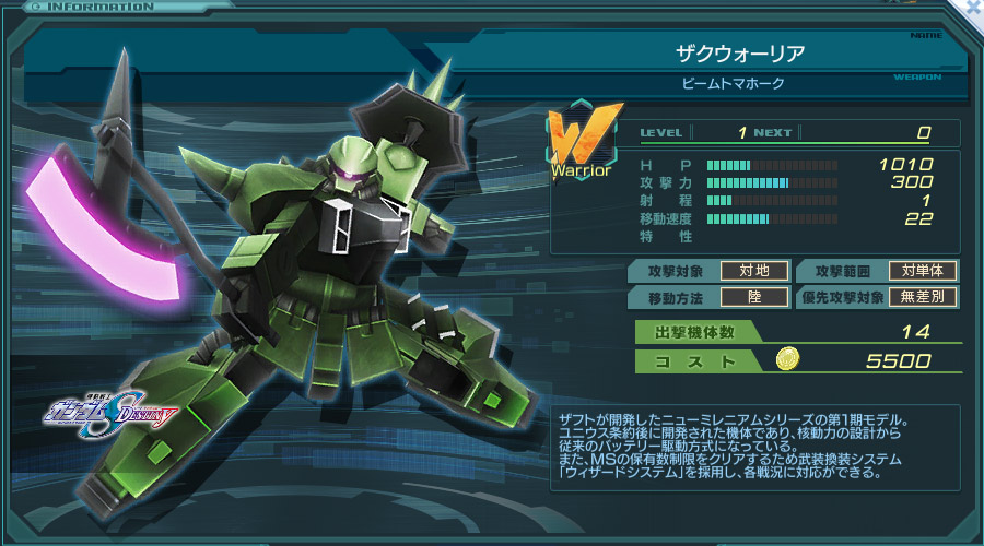 ラボレベル2では最高の、そして全体のウォーリアタイプとしては2番目のスペックを持つMS。