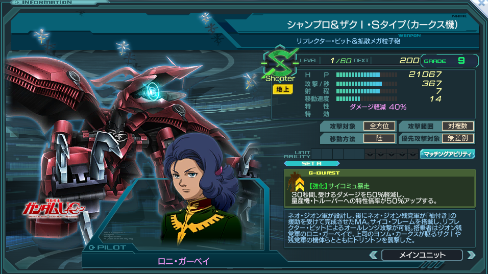 一覧 量産機 | エース | MA 最終ステータス 量産機 | エース | MA 比較データ エースGバースト | シリーズ別早見表 | 特性早見表| MS索引 赤字はレベルアップによるMAX値 基本ステータス