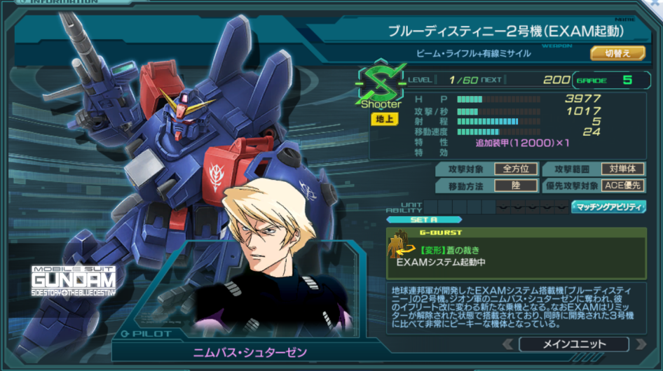 | エース機 | 登場作品 | 機動戦士ガンダム外伝 ザ・ブルー・ディスティニー | ||