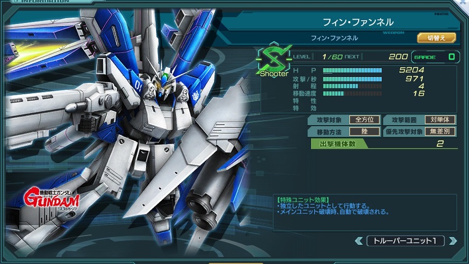 | 特殊ユニット効果 | ・独立したユニットとして行動する。 ・メインユニット破壊時、自動で破壊される。 | |||