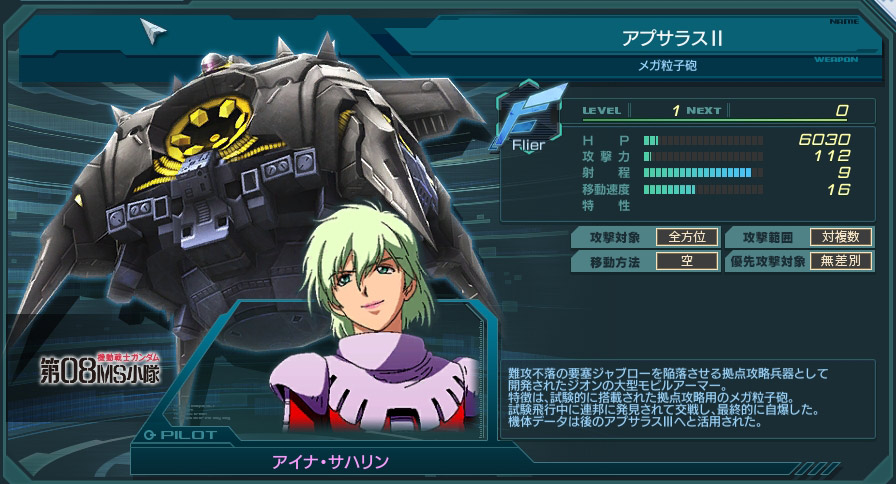 そもそもアプサラス計画はジオン公国に不利な戦況を覆すべく、地上基地からミノフスキークラフトを用いて(防空ミサイル等の攻撃の及ばない)成層圏まで上昇し、
