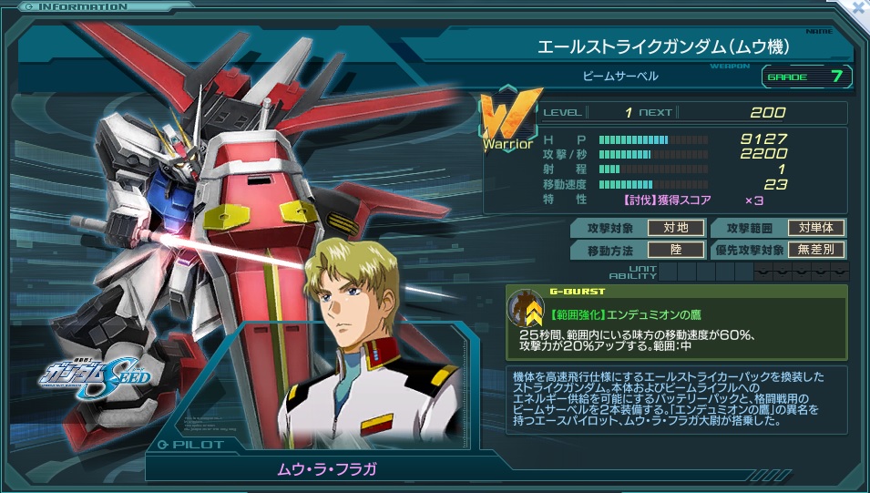移動速度やGバーストの効果内容など、エールストライクルージュに近い運用性を持つW型エース。基礎ステータスはこちらの方がルージュより上。