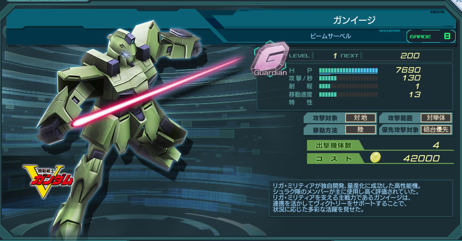 一覧 量産機 | エース | MA 最終ステータス 量産機 | エース | MA 比較データ エースGバースト | シリーズ別早見表 | 特性早見表| MS索引 赤字はレベルアップによるMAX値