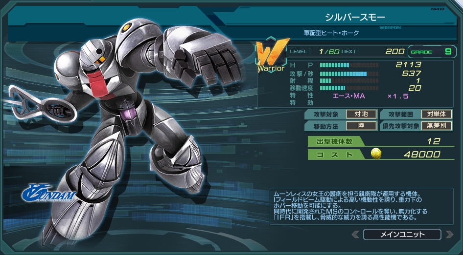 一覧 量産機 | エース | MA 最終ステータス 量産機 | エース | MA 比較データ エースGバースト | シリーズ別早見表 | 特性早見表| MS索引 赤字はレベルアップによるMAX値