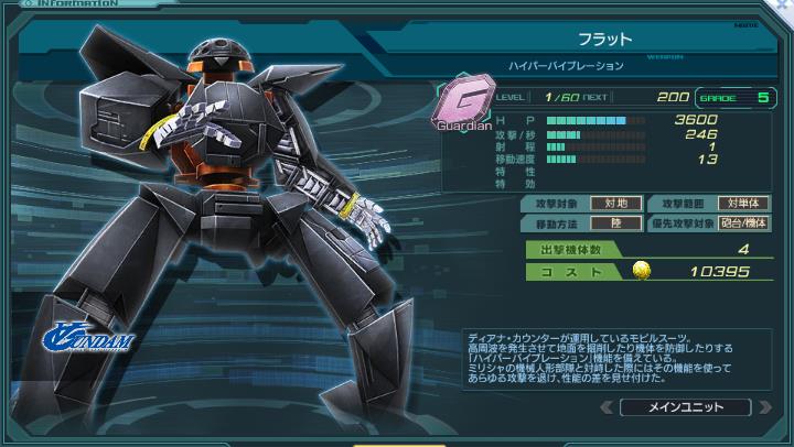 ∀ガンダムシリーズ初のG型量産機。機体数は標準的だが、HP・攻撃力は高め。