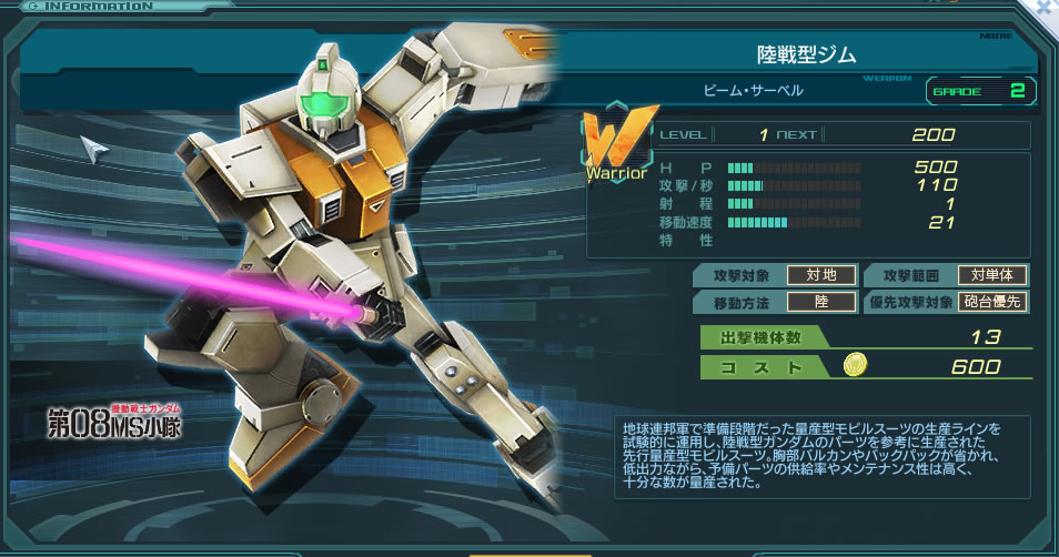 最短で入手可能な砲台優先攻撃持ちで足回りも優秀な機体。 作れる資金が貯まるようになったら最優先で作って損なし。 白トーラスと比べると機体数が少ないので両機を組み合わせて出撃させ数にものを言わせるのがオススメ。