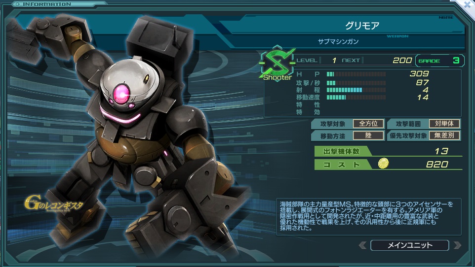 それでもグレード3機体だけあり初期機体よりは強い。プレイしはじめの頃に入手できれば心強いだろう。