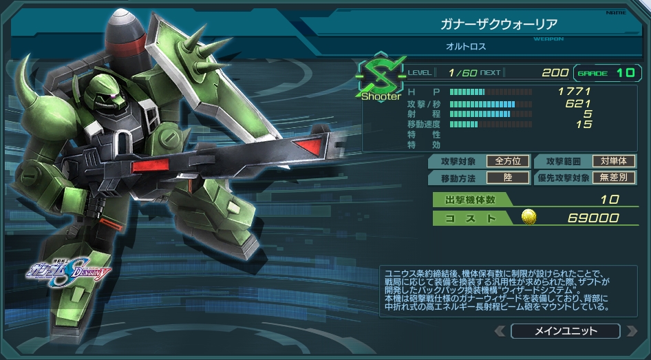 一覧 量産機 | エース | MA 最終ステータス 量産機 | エース | MA 比較データ エースGバースト | シリーズ別早見表 | 特性早見表| MS索引 赤字はレベルアップによるMAX値 基本ステータス